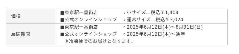 ※東京駅一番街店、公式オンラインショップで展開内容が異なります。