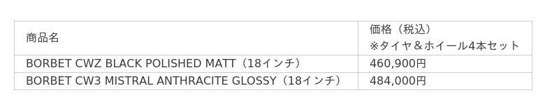 ※価格は全てタイヤ&ホイール4本セットの価格です。