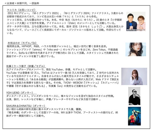 【出演】マユリカ、木咲ほのか、佐藤ミケーラ倭子、YOH UENO、