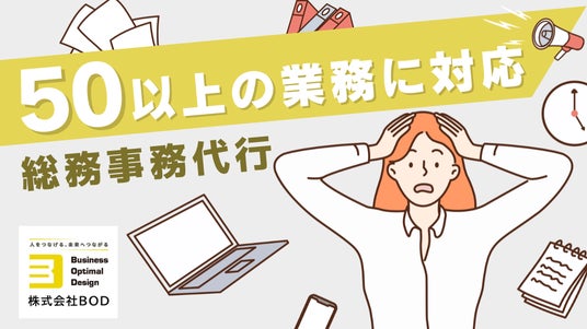人×テクノロジーで社会の原動力となり「人をつなげる 未来へつながる」の実現を目指す株式会社BOD(本社:東京都豊島区、代表取締役:田中大善、以下BOD)は、6月10日に「総務事務代行サービス」のサービスページを公開しました。文書管理・備品管理・受付・出張手配・メール室対応など、50項目以上の業務に対応可能です。