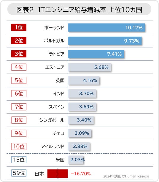 ●前年からの増加率は1位ポーランド、2位ポルトガル、3位ラトビアと、ヨーロッパ各国でITエンジニア給与が上昇