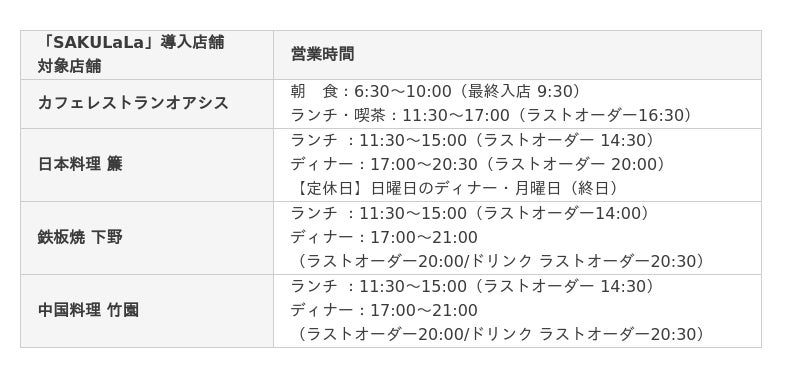 今回、宇都宮東武ホテルグランデ内レストランにおける「SAKULaLa」サービス開始を記念して、東武商品券のプレゼントやレストラン会計金額20%割引のキャンペーンを実施します。詳細は、以下の「キャンペーンについて」を参照ください。