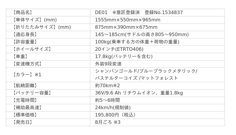 「バイク文化を創造する」を合言葉にバイクのカスタムパーツや用品を企画、開発、販売し、世界のライダーに支持されるブランドを目指すオートバイアフターパーツメーカーの株式会社デイトナ(静岡県周智郡森町一宮4805 代表取締役 織田哲司)は、電動アシスト自転車DE01・DE01Xの新色を8月より販売開始いたします。
