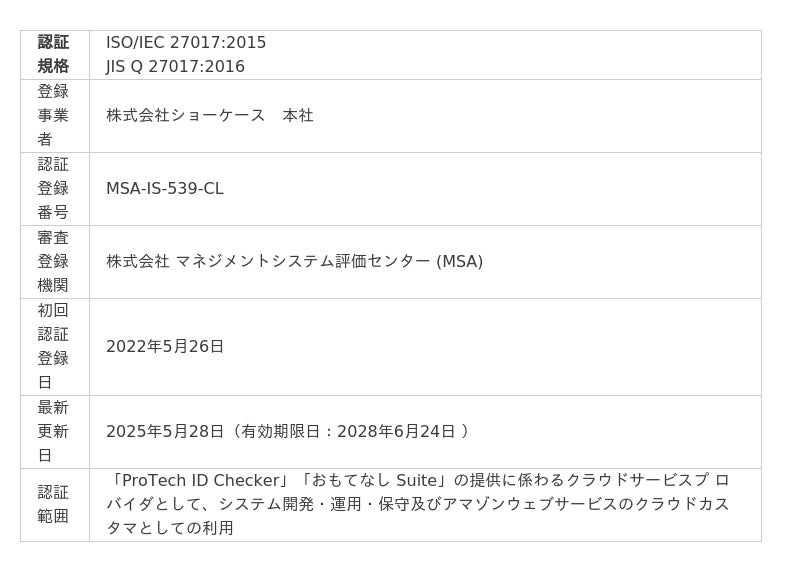 ショーケース、情報セキュリティマネジメントシステム(ISMS)の国際規格「ISO/IEC 27001」および「ISO/IEC 27017」の認証を更新