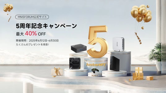 MICRO COMPUTER (HK)TECH LIMITED(本社:Hongkong)は、Minisforum日本公式ストアの5周年を記念し、2025年6月12日(月)~30日(月)から期間限定で大規模なキャンペーンを開催いたします。