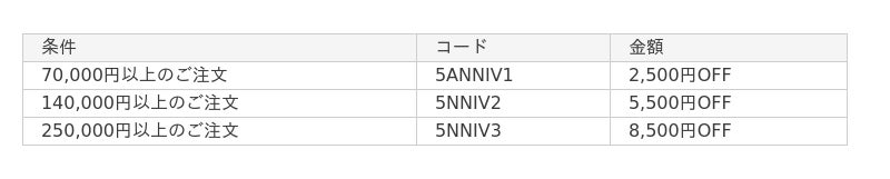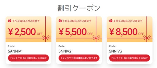 5個以上購入:25,000円OFFをゲット