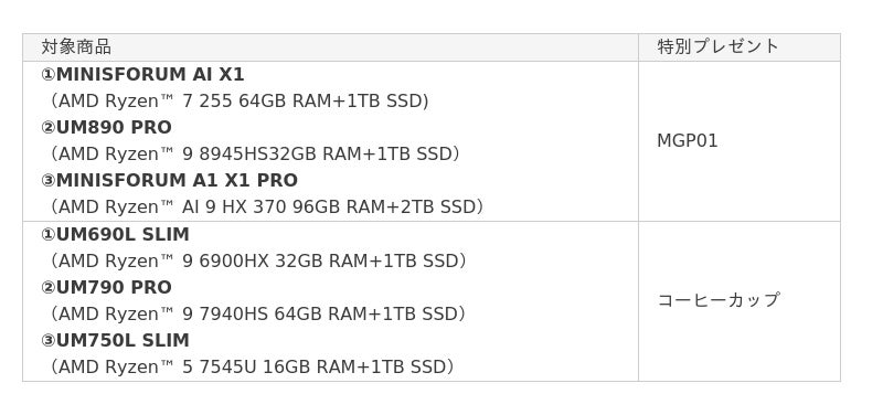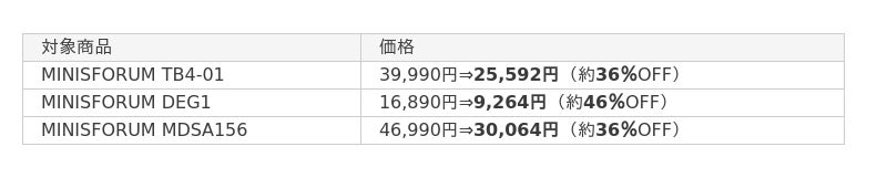 詳細 :https://www.minisforum.jp/pages/5-year-milestone-sale