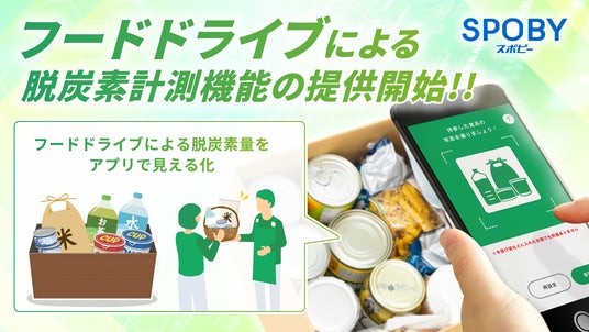 脱炭素アプリ「SPOBY」は、個人の脱炭素活動によって生じた脱炭素量(CO2削減貢献量)をグラム単位で可視化し、個人の意識改革・行動変容を促します。今回、新たに導入される脱炭素機能の一つとしてアプリ内でフードドライブの実装を開始します。