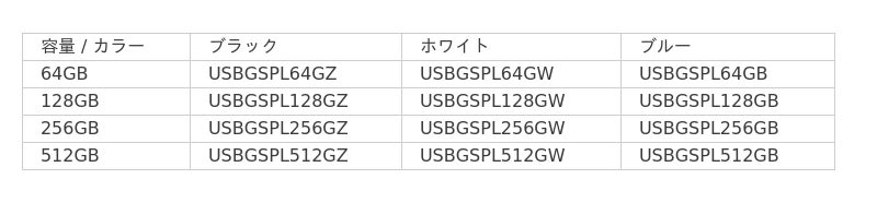 容量は64GB、128GB、256GB、512GBの4種類から選択可能。 カラーもブラック、ホワイト、ブルーの3色をご用意しております。