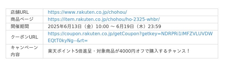 CHOUHOU楽天市場店:https://www.rakuten.co.jp/chohou/
