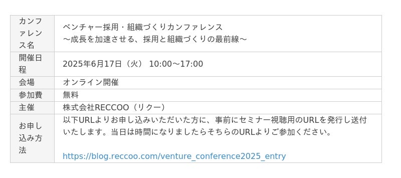 株式会社PLAN-B(本社:東京都品川区、代表取締役:鳥居本 真徳)は、2025年6月17日(火)に株式会社RECCOOが主催する「ベンチャー・組織づくりカンファレンス」の特別講演に登壇いたします。