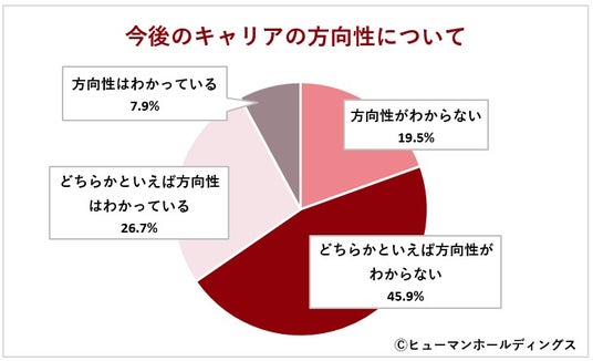 ●「今後のキャリアの方向性がわからない」のは、65.4%。働き方の多様性、また選択肢が増える一方で、自身のキャリアを明確に描けずにいる人が多い傾向