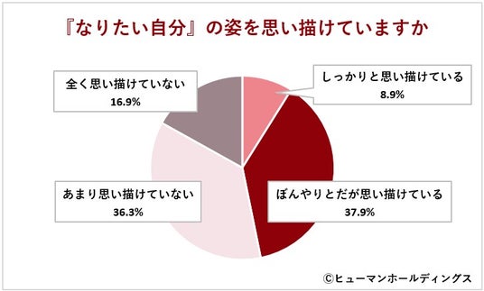 「なりたい自分の姿を思い描けていますか」という質問に対して、思い描けていると回答したのは46.8%でした(「しっかりと思い描けている」(8.9%)と「ぼんやりとだが思い描けている」(37.9%)の合計値)。