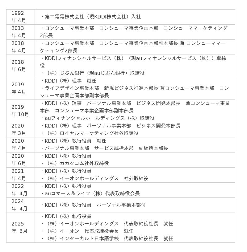 KDDIグループの株式会社イーオンホールディングス(本社:東京都新宿区、代表取締役社長:塚田 俊文、以下 イーオンホールディングス)及び株式会社イーオン(本社:東京都新宿区、代表取締役社長:重野卓、以下「イーオン」)は、本日開催した臨時取締役会において、2025年6月13日付役員の異動について、下記の通り決定しましたのでお知らせいたします。