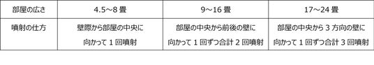 使い始めは窓やドアを閉めてください。部屋の広さに合わせて、お部屋空間に噴射をしてください。