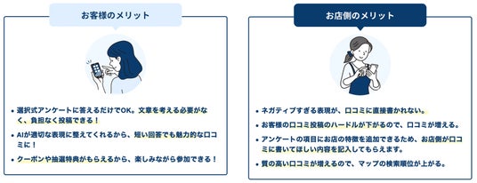 ・選択式アンケートに答えるだけでAIが口コミ文章案を生成するので、お客様の負担が少ない
