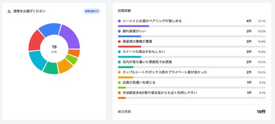 アンケート結果は集計できるので、お客様の動向調査にも活用できます。来店理由や注文したメニューなどをヒアリングして、メニュー開発や広報に役立てることができます。