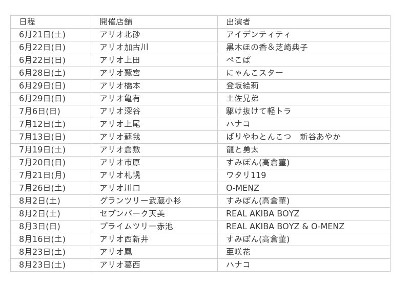 会場:Aブロック:7月26日(土) アリオ札幌(北海道)