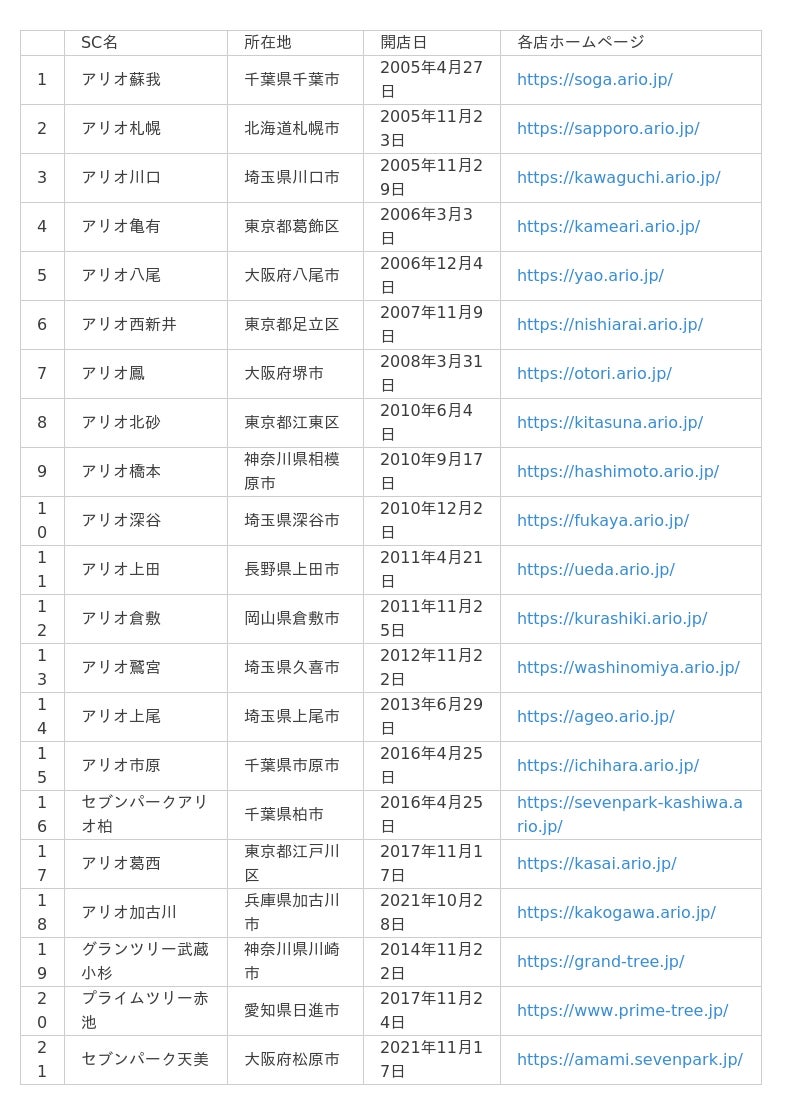 アリオ・グランツリー武蔵小杉・プライムツリー赤池・セブンパーク天美の新しい展開にご期待ください。