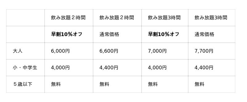 ※料金に含まれるもの:ブッフェのお食事&飲み放題