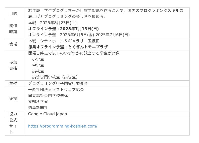 テック情報、「プログラミング甲子園2025」徳島開催オフライン予選(7月13日)に協賛