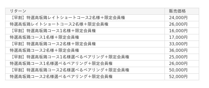 - 特選高坂鶏レイトショートコース