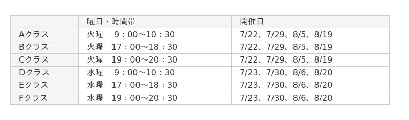 ■夏の集中作文講習 講習日程