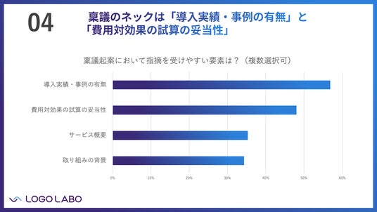 ■ 04:稟議のネックは「導入実績・事例の有無」「費用対効果の試算」