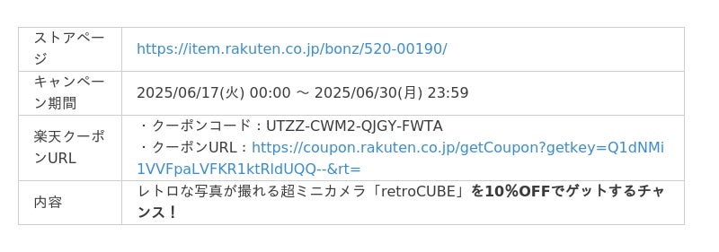 一般発売を記念して、「retroCUBE」の取扱ネットショップ「BONZ楽天市場店」では、期間限定の割引キャンペーンを実施中。“エモい写真が撮れるキューティー”な「retroCUBE」は、いかがですか?