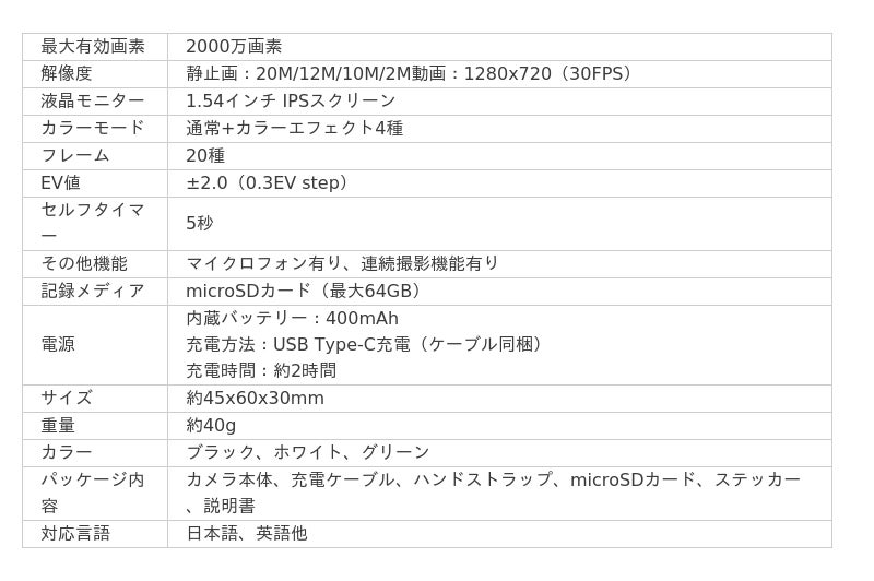 シックで可愛いデザイン多くの子供用カメラと違い、外観はヴィンテージカメラをモチーフにしたシックなデザイン。