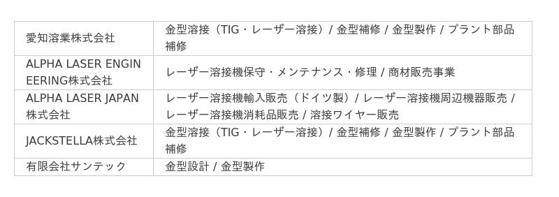 事業内容 :金型製作/金型溶接/金型測定/金型補修/金型溶接教育コンサルティング