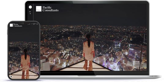 当社のウェブサイトは2024年10月にリニューアルを行い、複雑化する社会課題に対して建設コンサルタントの枠に囚われない「社会インフラに関するコンサルタント」としての当社を発信しています。ウェブサイトトップにあるブランディングムービーには変化に対して柔軟に対応し、未来をプロデュースするというメッセージが込められています。