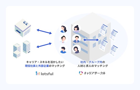 また、2024年からは、社内・グループ内での公募異動や副業を促進する企業向けプラットフォーム『キャリアサークル by lotsful』の提供をスタートさせ、企業の人材課題に対してより多角的にアプローチすることが可能となっています。
