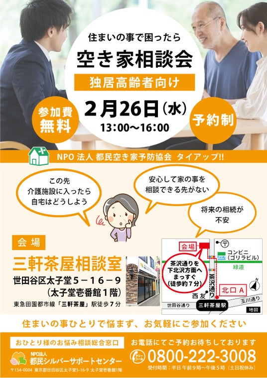 【NPO法人都民シルバーサポートセンター】三軒茶屋相談室で高齢者向け「空き家相談会」を実施します!