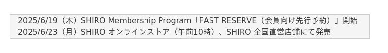 公式オンラインストア:https://shiro-shiro.jp/