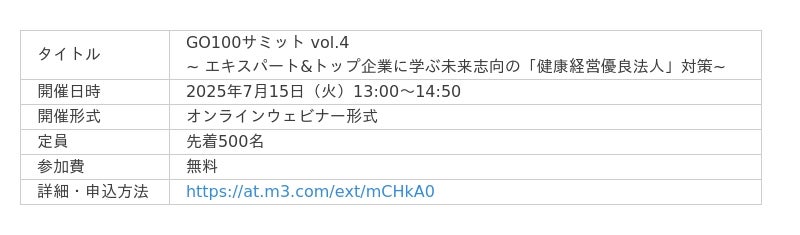 エムスリー、健康経営イベント「GO100サミット」第4回を7月15日(火)に開催