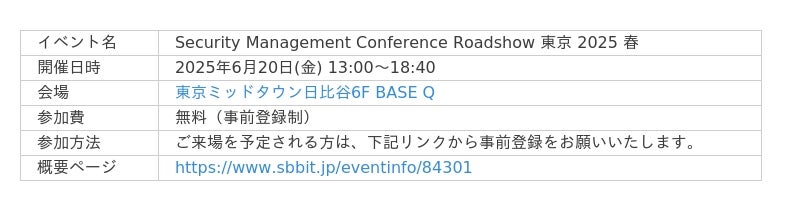 Security Management Conference Roadshow 東京 2025 春への来場予約が可能です。