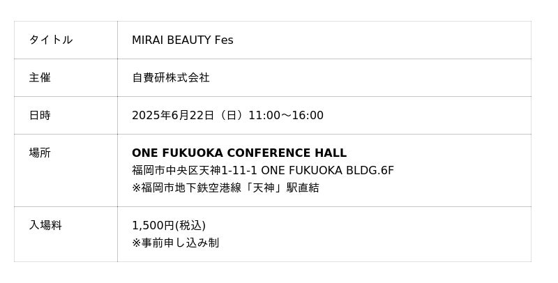 『永遠の美しさへの夢が、 夢に終わらない未来を創りあげること』を使命に掲げる、化粧品の研究開発・製造販売を行う株式会社エテルナム(本社:東京都渋谷区、代表取締役:松本隆明)は、2025年6月22日(日)開催の、九州で活躍するトップ美容医師たちが集結する、美容医療の勉強&体験イベント「MIRAI BEAUTY Fes 美と医の祭典」に出展します。