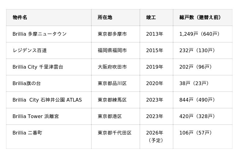 東京建物では、日本最大のマンション建替えプロジェクト(2013年竣工当時)である「Brillia 多摩ニュータウン」を皮切りに、東京23区内最大級の大型団地の一括建替え事業「Brillia City 石神井公園 ATLAS」(2021年竣工)や都心における大規模マンション建替え事業「Brillia Tower 浜離宮」(2023年竣工)など、さまざまなマンションの建替え事業に取り組んでまいりました。今後もお客様と社会が求める課題の解決に積極的に取り組み、持続可能なまちづくりを進めてまいります。