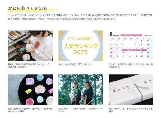 モダンな仏壇仏具の企画・販売を行う株式会社現代仏壇(本社:大阪府大阪市、代表取締役社長 伊井 秀行、以下現代仏壇)はこの度2025年6月18日(水)に弊社のWEBサイト「仏壇のあるリビング」内にて、おしゃれなお盆飾りや、お盆に関する知識などを紹介する特集WEBページ「2025お盆特集」を開設いたしました。