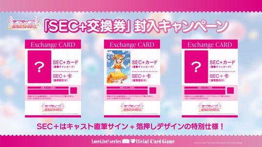 また、8月9日(土)発売の2商品「スタートデッキ ラブライブ!」「ブースターパック 夏、はじまる。」を対象に「SEC+カード交換券」封入キャンペーンを実施いたします。