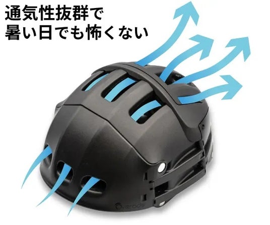 約3分の1サイズに折りたたみ可能。バッグに収納でき、通勤・外出先でも邪魔にならない。安全とデザイン性を両立した、フランス発の折りたたみヘルメット。