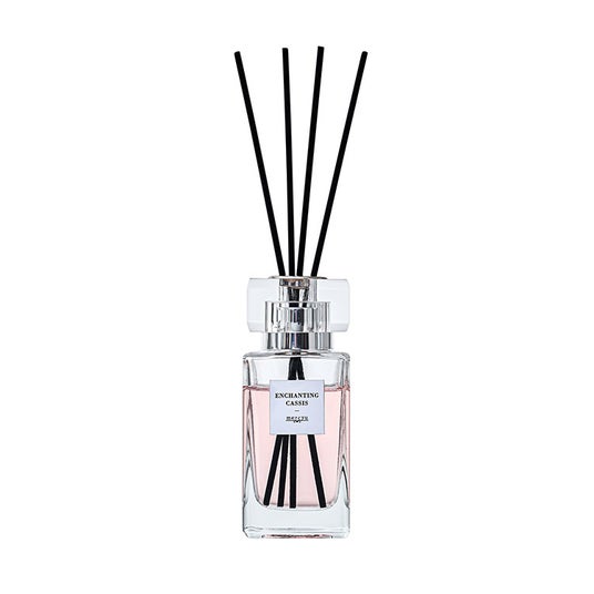 香水瓶をイメージした美しいリードディフューザー。珍しいカラーオイルを採用し、飾っても楽しめる仕上がりに。コンパクトサイズのため、置き場所を選ばない点も◎。