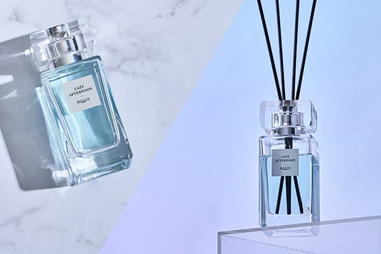 ペールトーンのカラーオイルと香水瓶のようなデザインが、お部屋をラグジュアリーな空間に!光を受けて輝く新作リードディフューザーが、mercyu(メルシーユー)から新発売【ライフオンプロダクツ株式会社】