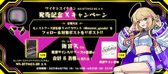 「ワイヤレスイヤホン MX-BTTW03-BK エル」発売記念Xキャンペーン