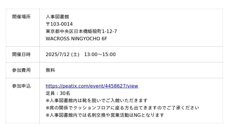 【 7月12日(土) 】人事図書館 大見学会を開催 ~匿名&名刺交換禁止で「本質的な学び」に集中~