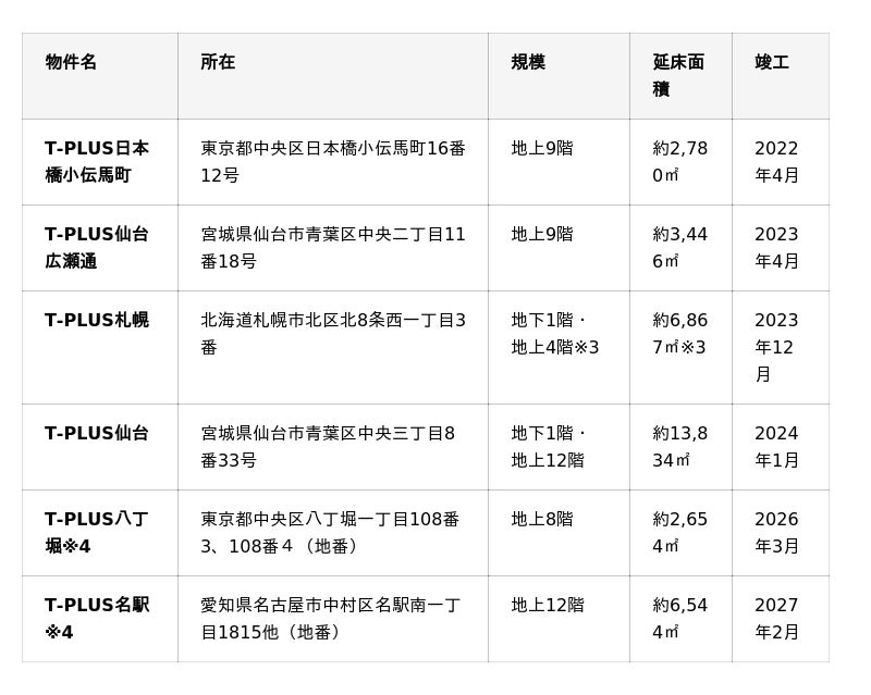 ※3 複合用途施設における一部区画であるため、「T-PLUS札幌」部分の規模および専有面積を記載しています。