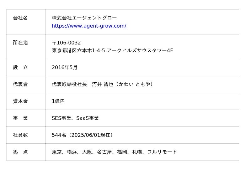 <参考:株式会社エージェントグローについて(2025年6月 現在)>