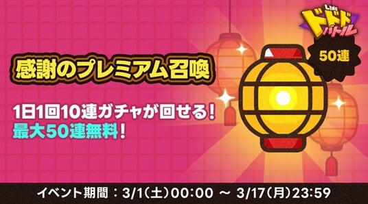 LINEヤフー株式会社は、当社が運営するカジュアルアクションゲーム「LINE ドドドバトル」(iPhone・Android対応/無料)において、サービス開始から0.5周年を迎えることを記念し、3月1(土)よりハーフアニバーサリーイベントを開始しました。