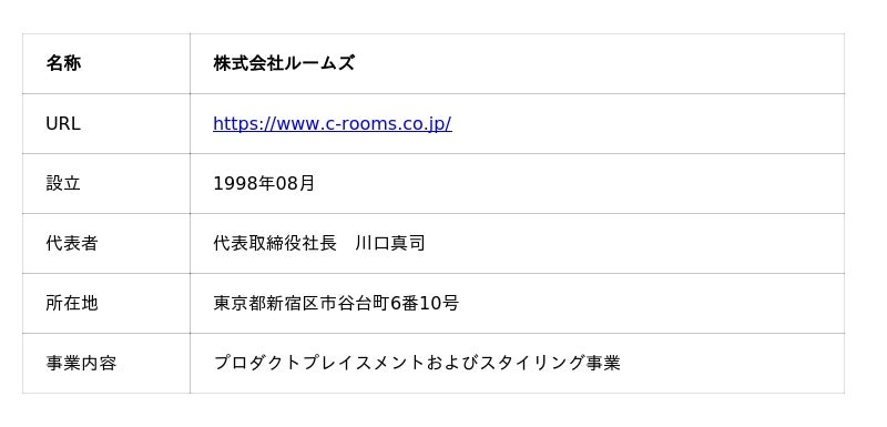 株式会社ルームズ(プロダクトプレイスメントおよびスタイリング事業)
